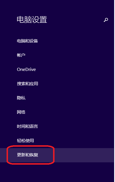 2、再依次点击更改电脑设置、更新和恢复、恢复、立即重启,如下图所示: