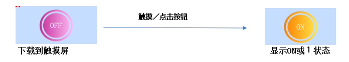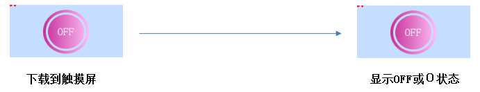 点动:下载到触摸屏后,按住该按钮把写入地址的位置为1/ON,松开该按钮则把写入地址的位置为0/OFF