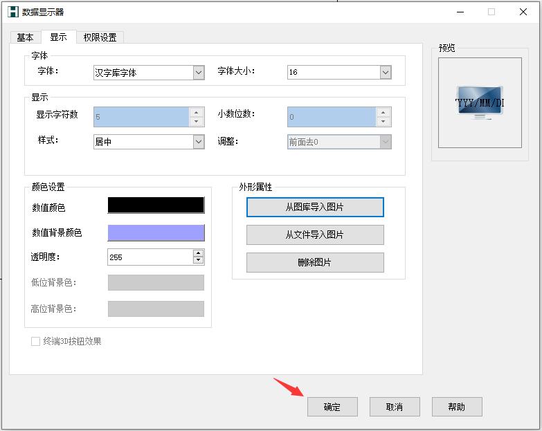 定义:对数值显示器外观、背景色、文本和文本对齐方式进行设置