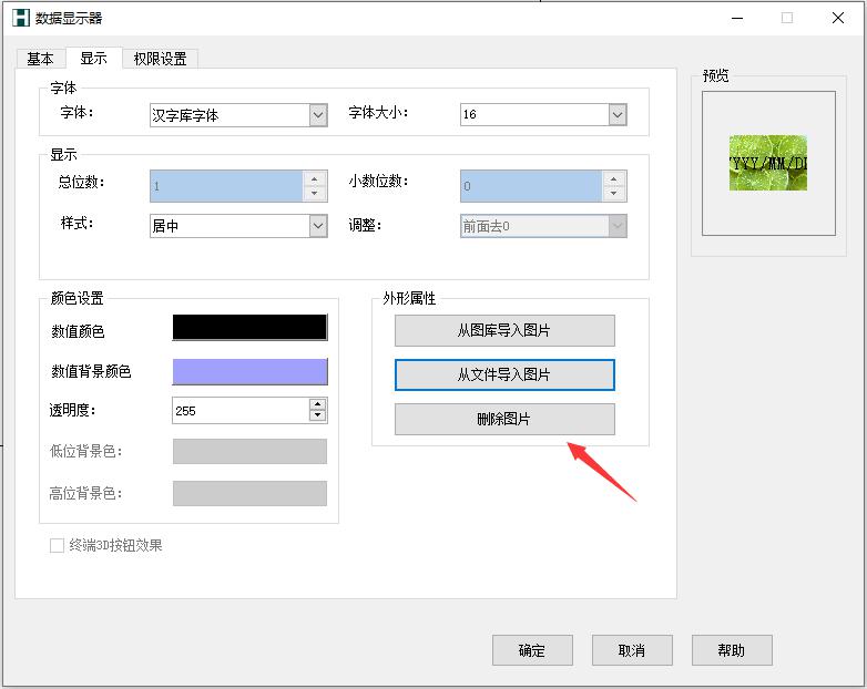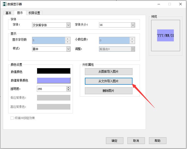 从文件中导入图片:从本地选择合适的图片作为数值显示器的外形,例如